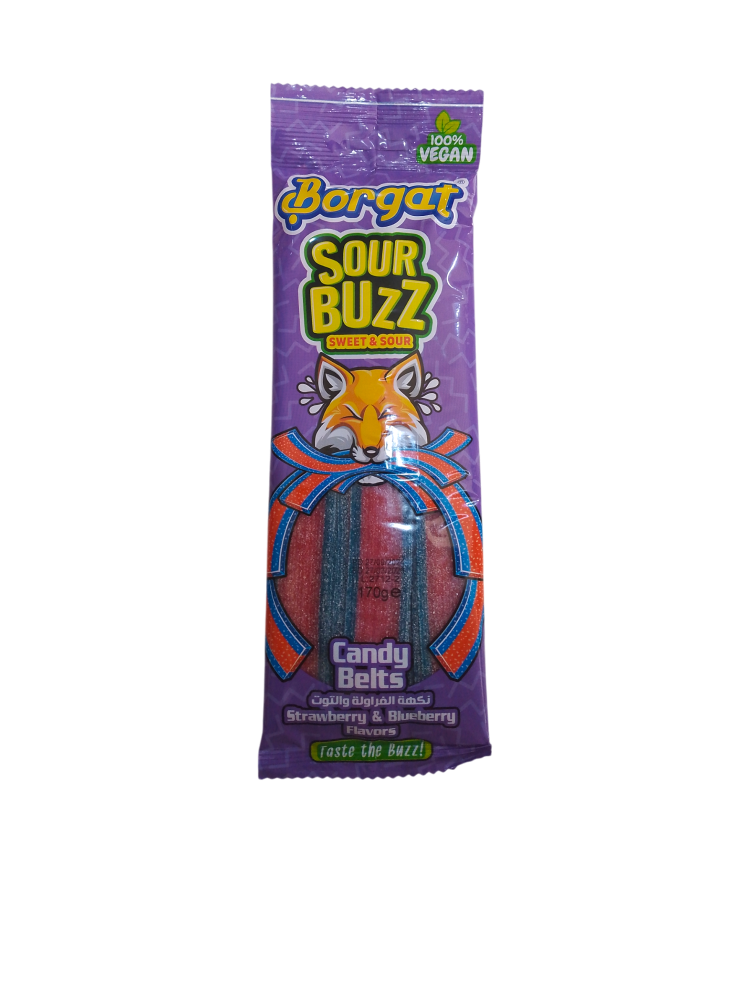 حلوى حامضة حزام بنكهة الفراولة و التوت بورقات 170 جرام